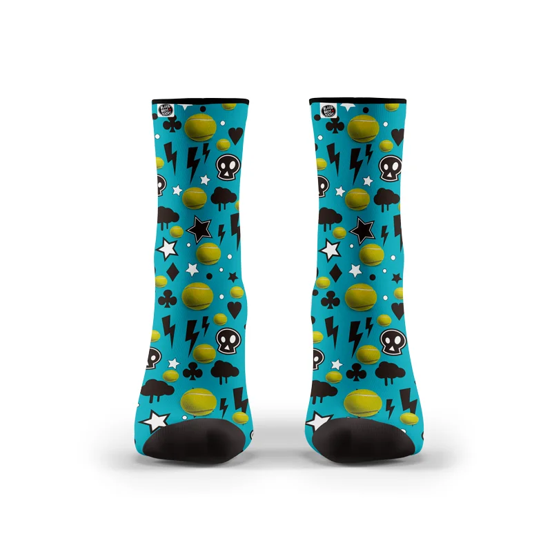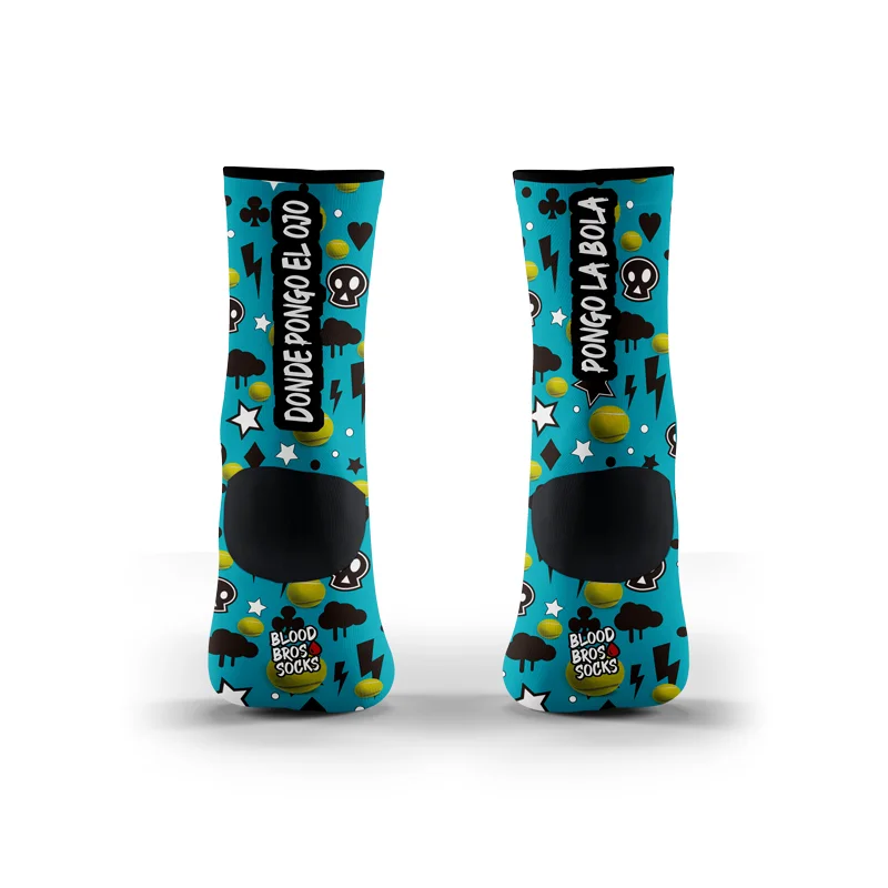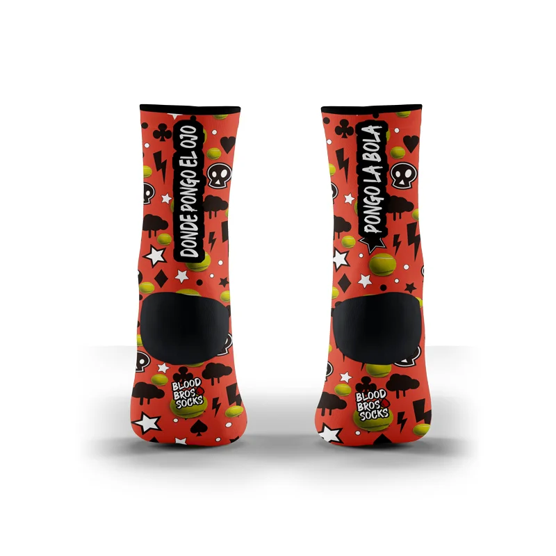Calcetines para PÁDEL de la marca BLOOD BROS® con tecnología CUSHION FLOW. Alcanza tu máximo rendimiento y disfruta de la comodidad y sujeción de estos calcetines especializados, a la vez que luces un diseño único y atrevido que sin duda llamará la atención.