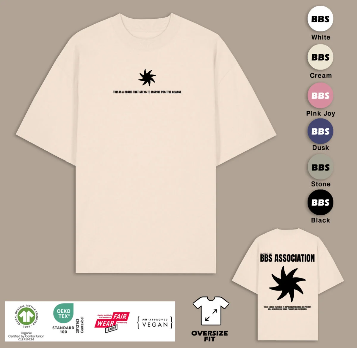 Material: 100% Algodón, punto liso, 190 g/m². Color gris vigoré 58: 85% algodón / 15% viscosa