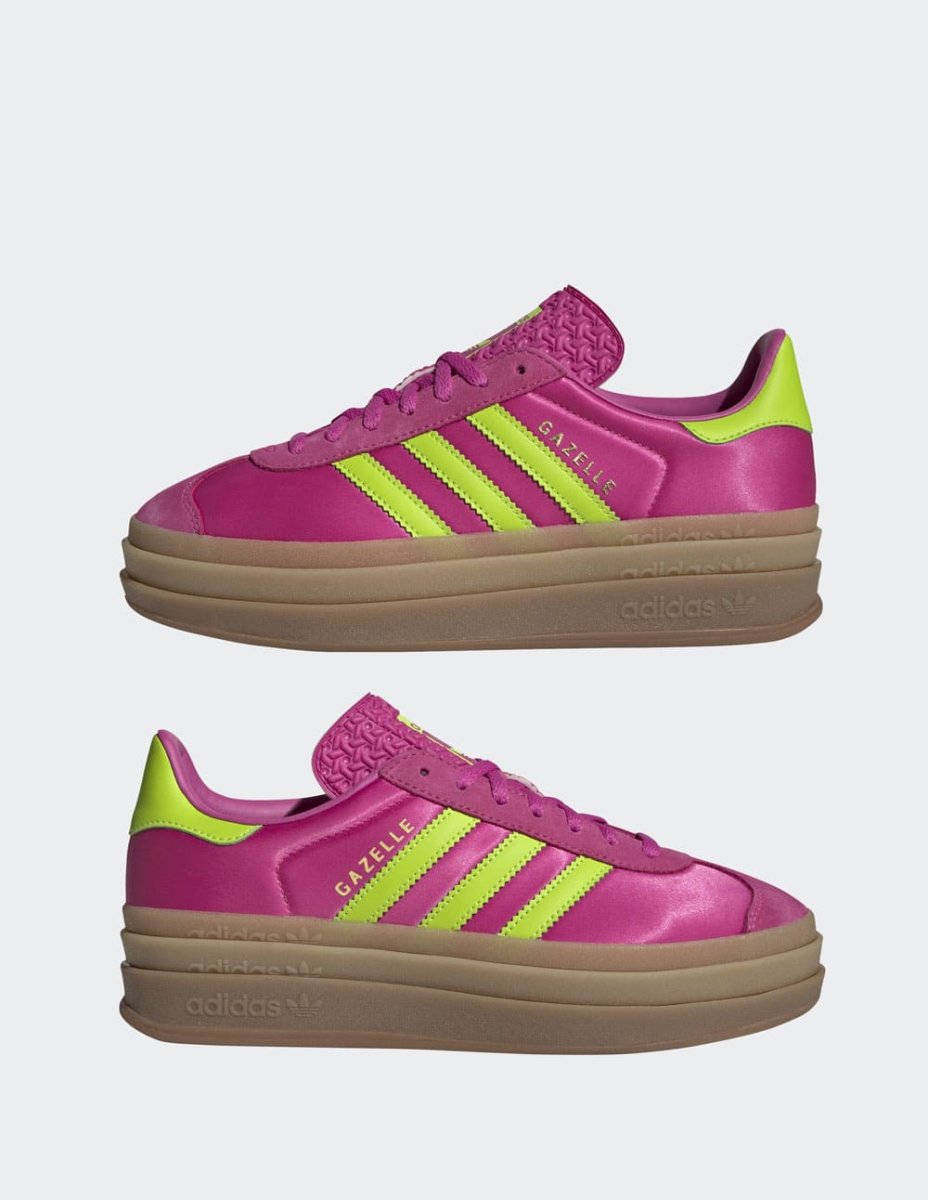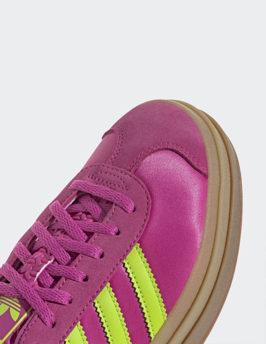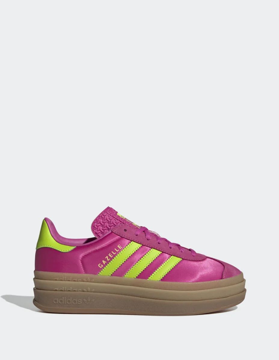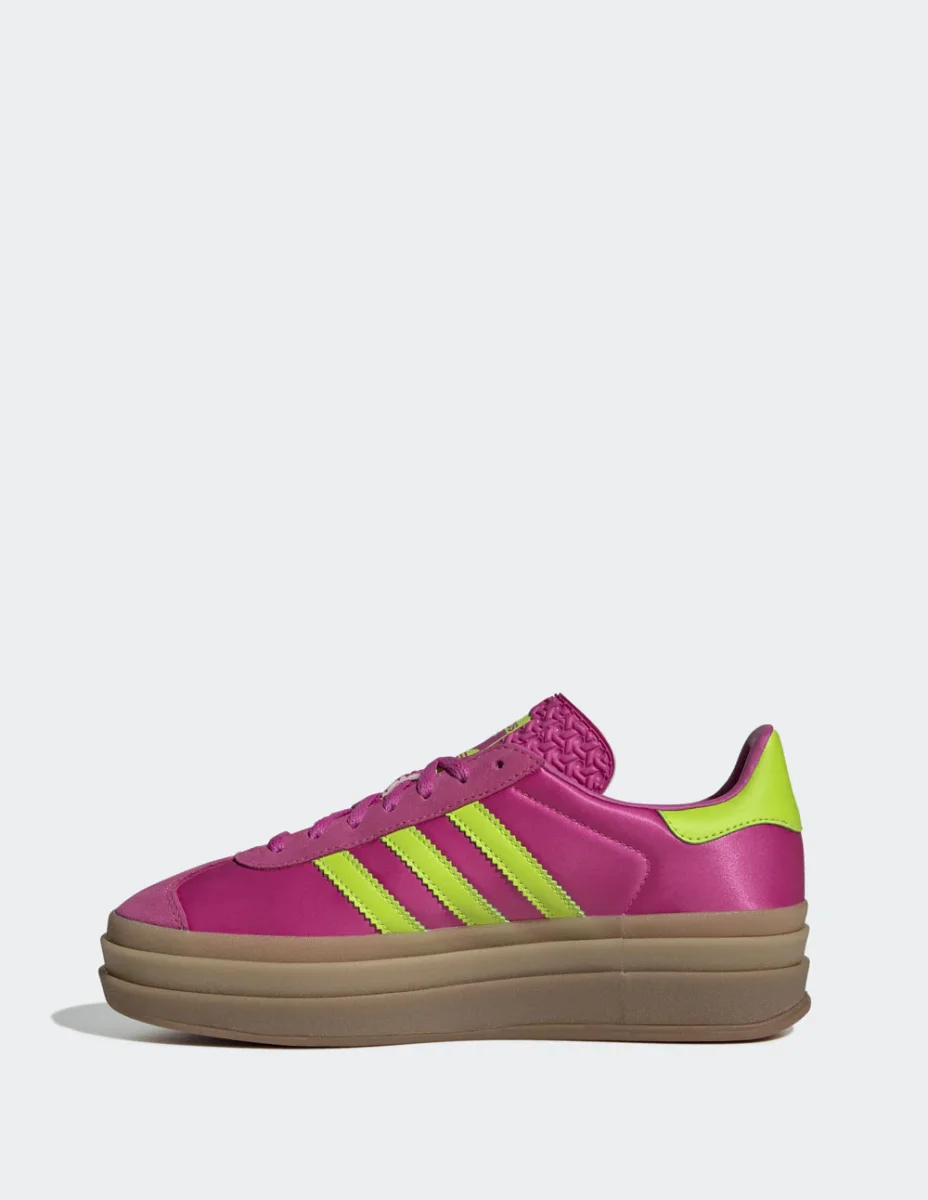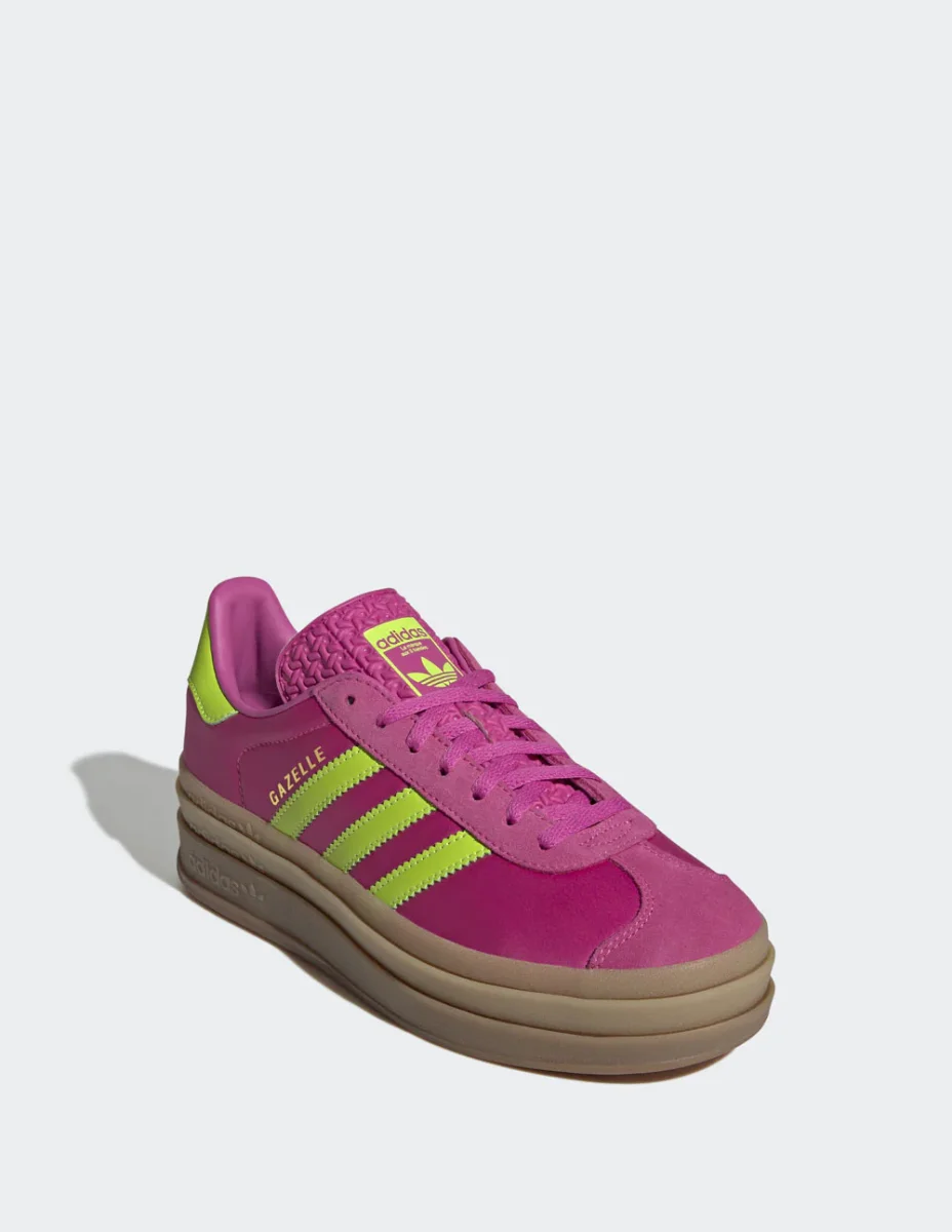Las adidas Gazelle Bold Rosas fusionan el estilo clásico con una plataforma moderna que eleva cualquier outfit. Su diseño en ante, detalles en contraste y suela gruesa brindan un look audaz y cómodo. Perfectas para quienes buscan destacar con un toque retro y femenino en su día a día.
