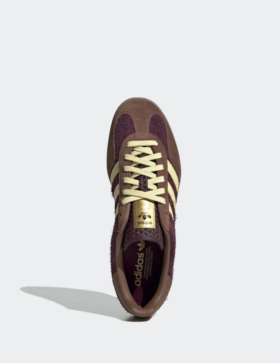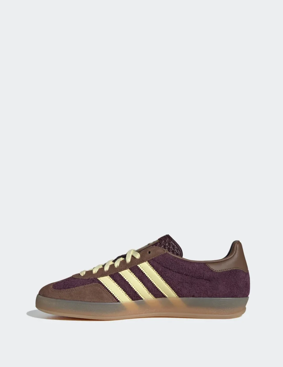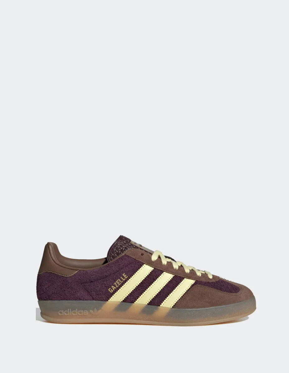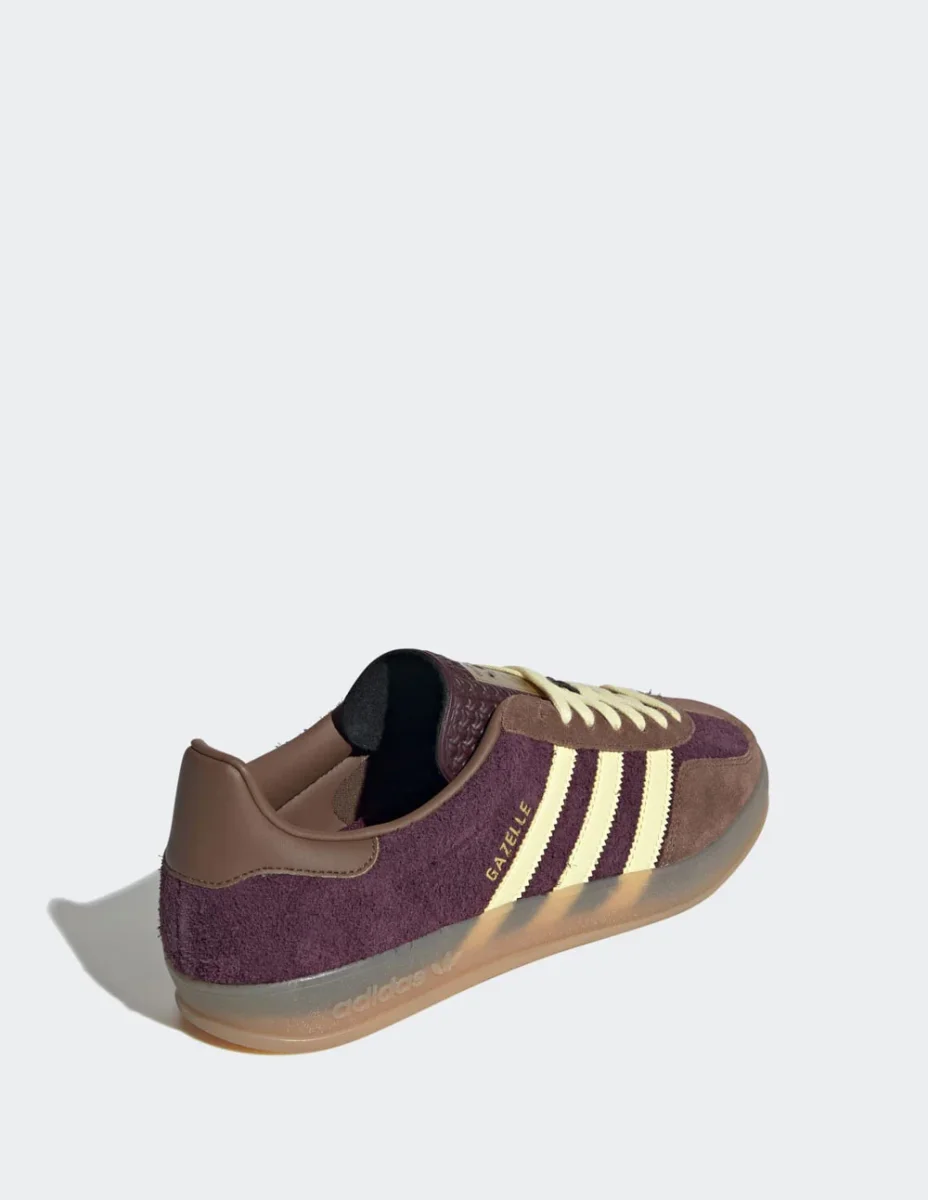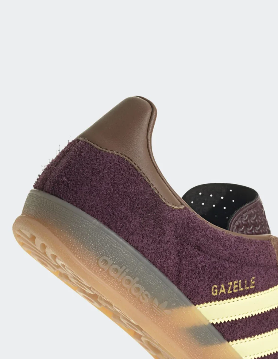 Las adidas Gazelle Indoor Burdeos destacan por su estética retro y acabados premium. Confeccionadas en ante suave, ofrecen un estilo atemporal ideal para el día a día. La suela de goma translúcida aporta un toque vintage y una pisada cómoda. Un icono que combina moda urbana y herencia deportiva.