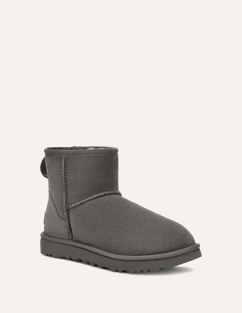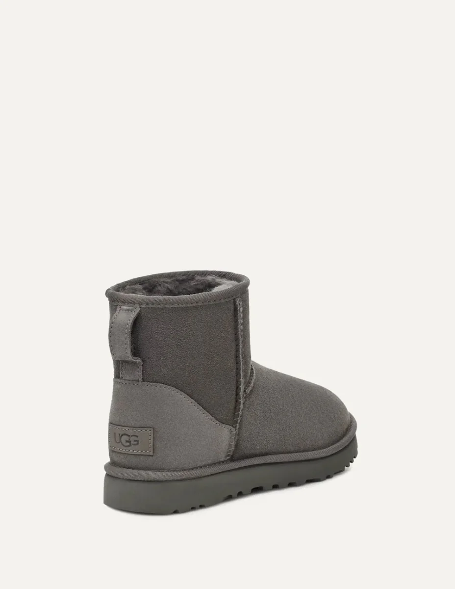 Las Botas UGG Classic Mini II Grises combinan diseño icónico y confort superior. Fabricadas en ante de alta calidad con tratamiento repelente al agua, ofrecen calidez gracias a su forro interior de lana. Su suela ligera y duradera aporta estabilidad, perfectas para un estilo casual y moderno.