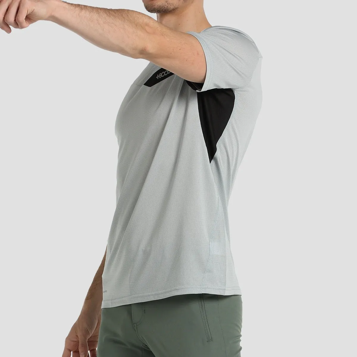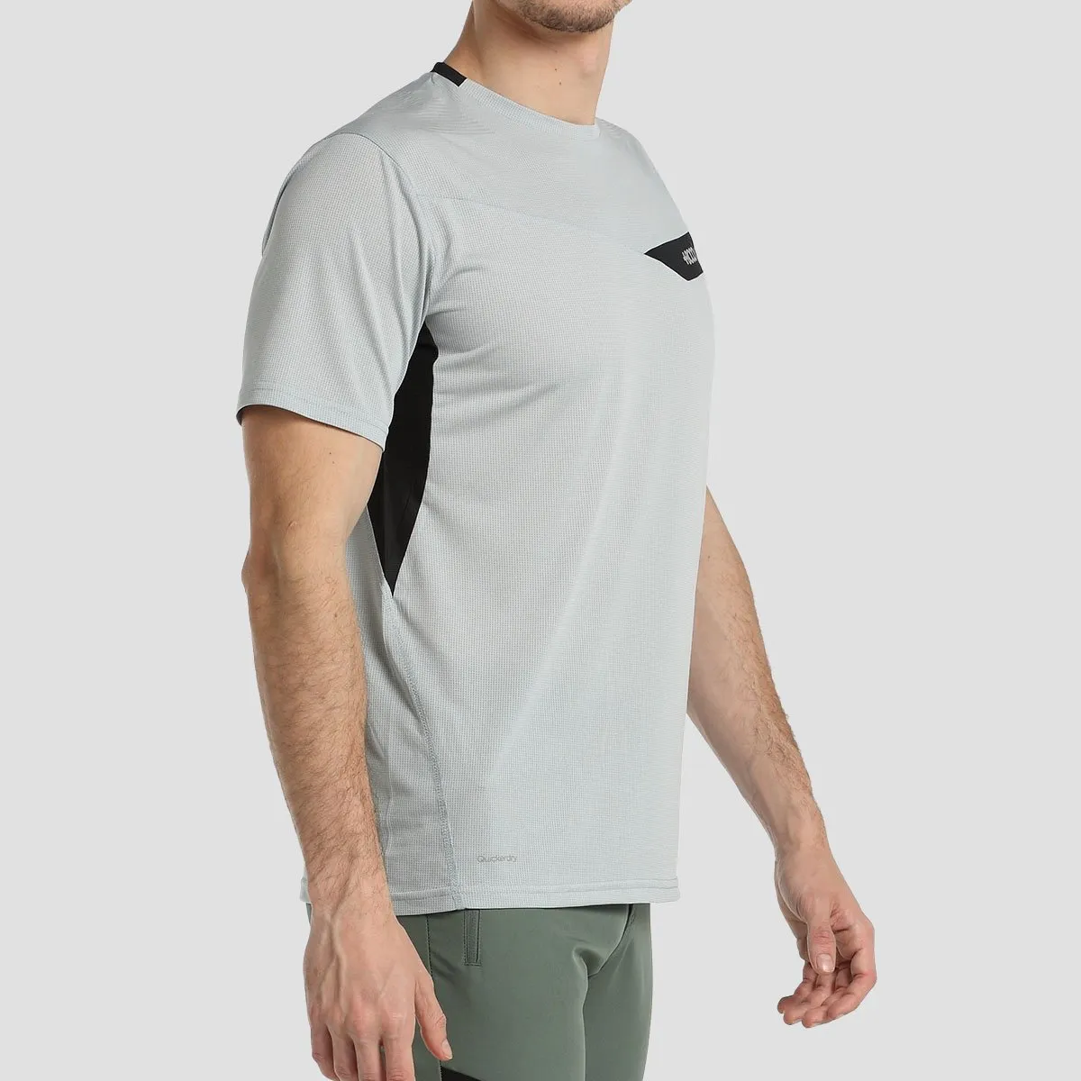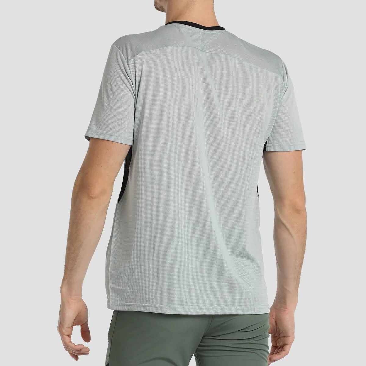 Camiseta de manga corta de actividad en tejido muy ligero con acabado de secado rápido, estampado siliconado en los hombros, paneles en material de rejilla bajo los brazos que facilitan el movimiento y la ventilación. Detalle estampado en la espalda.