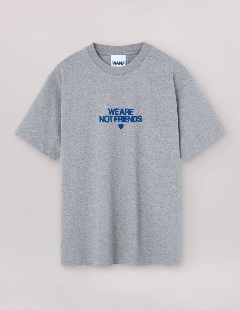 La camiseta We Are Not Friends Bold Love Gris combina estilo y comodidad con un diseño moderno y llamativo. Su logo distintivo refleja actitud y originalidad, perfecta para looks urbanos y desenfadados. Confeccionada con materiales de alta calidad, es una prenda esencial para quienes buscan marcar tendencia.