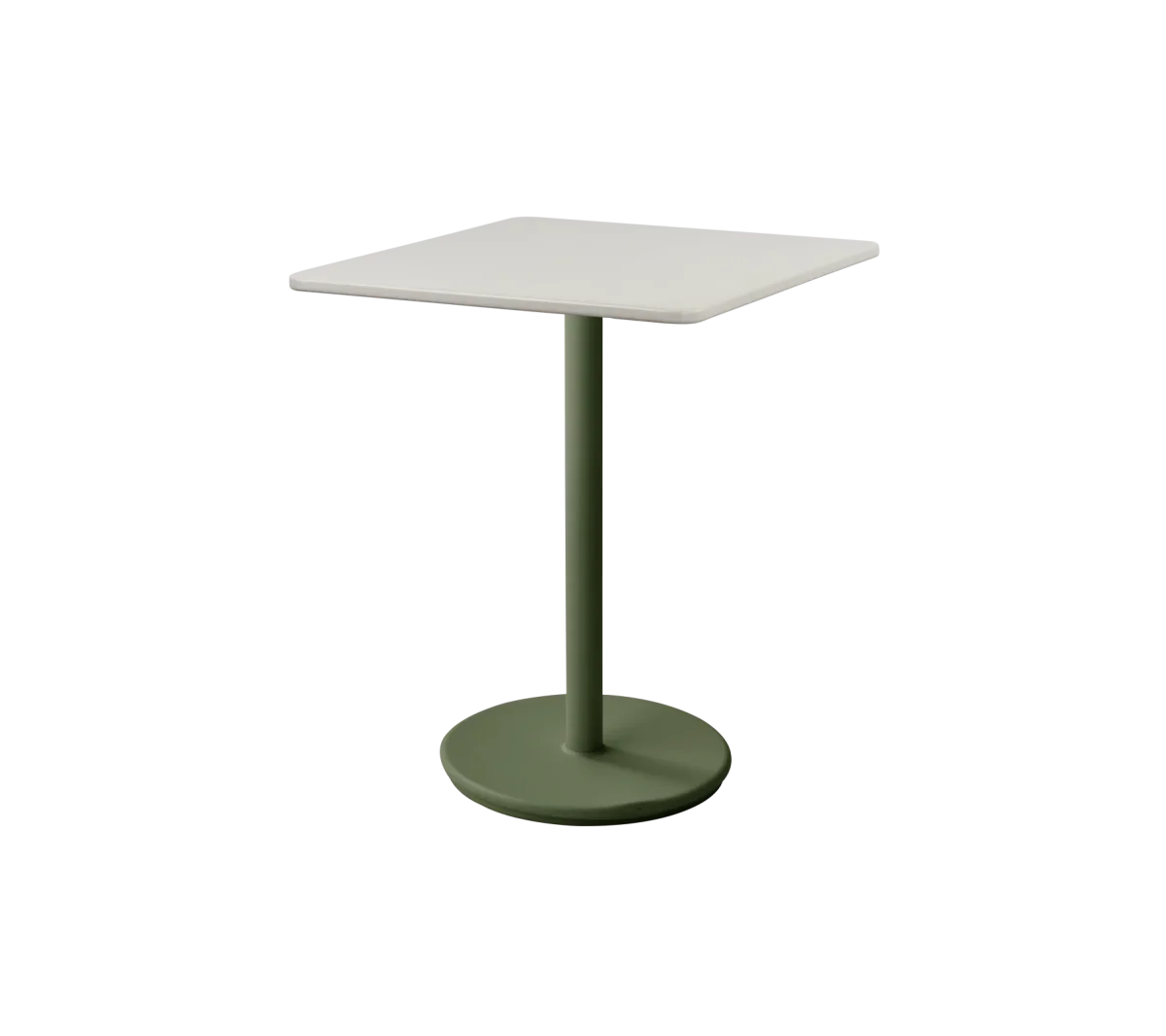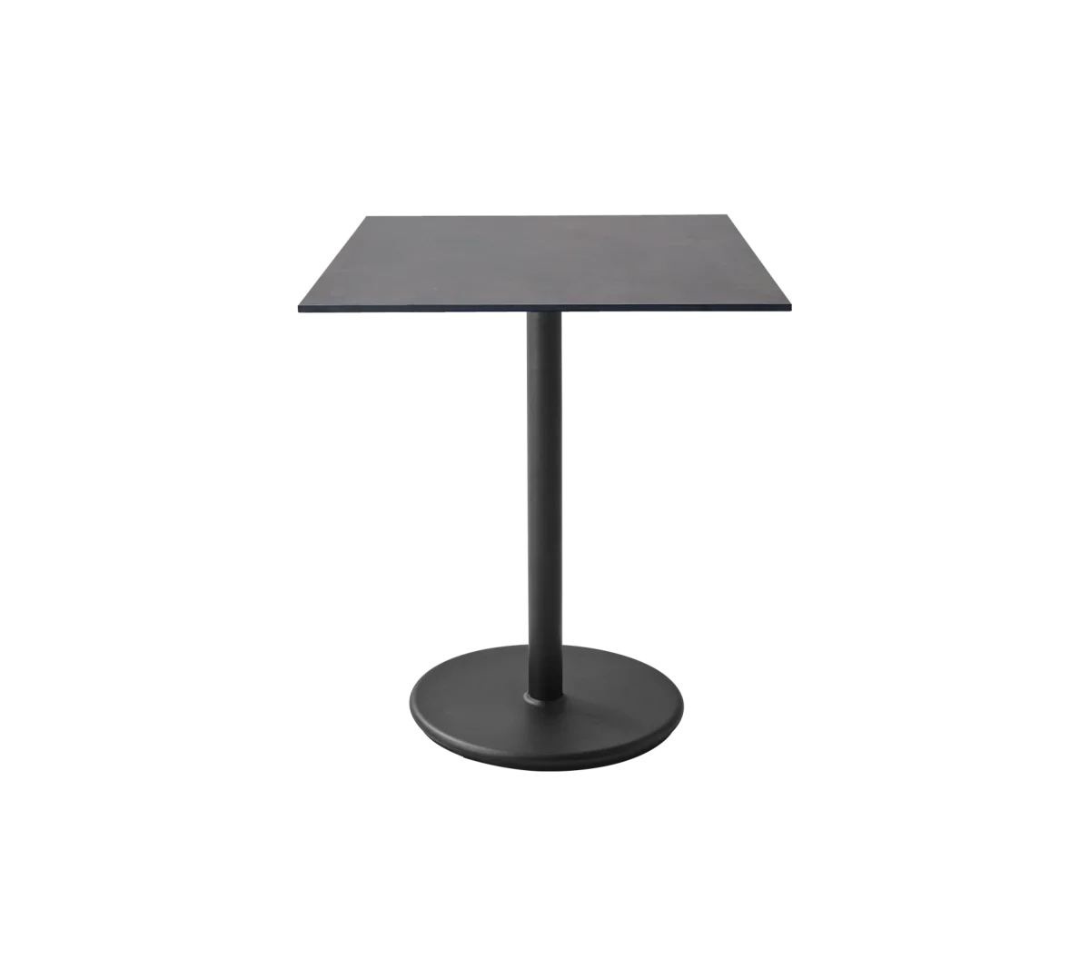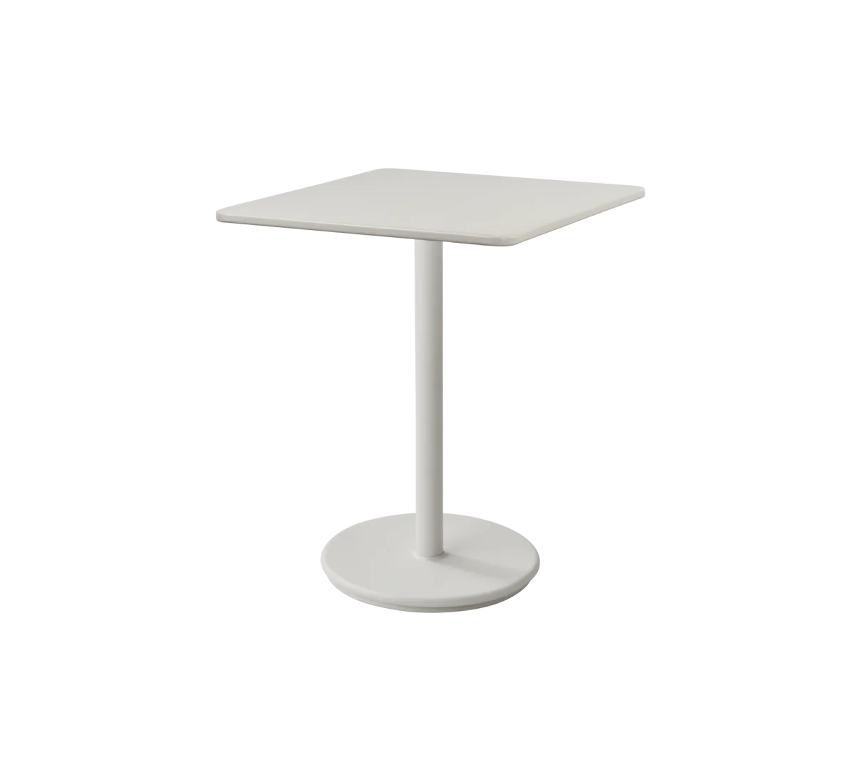 La mesa Go está hecha de aluminio con recubrimiento en polvo que resiste todo tipo de clima con una base de contrapeso para mayor estabilidad y fuerza, de este modo se puede usar en todo tipo de condiciones climáticas. La mesa Go está diseñada por Cane-line Design. La base puede ser combinada con varios tamaños y diseños de encimeras.