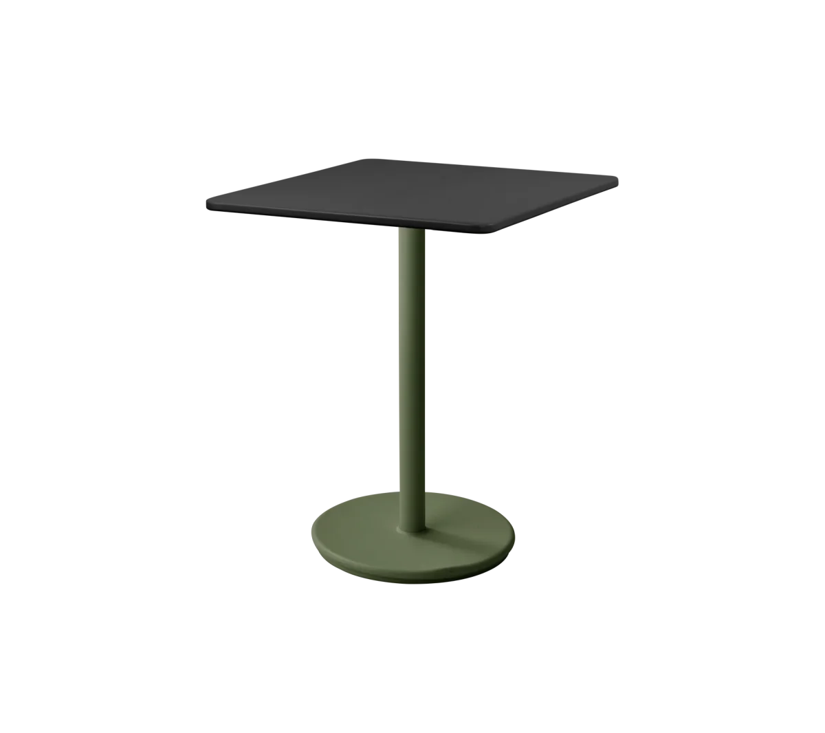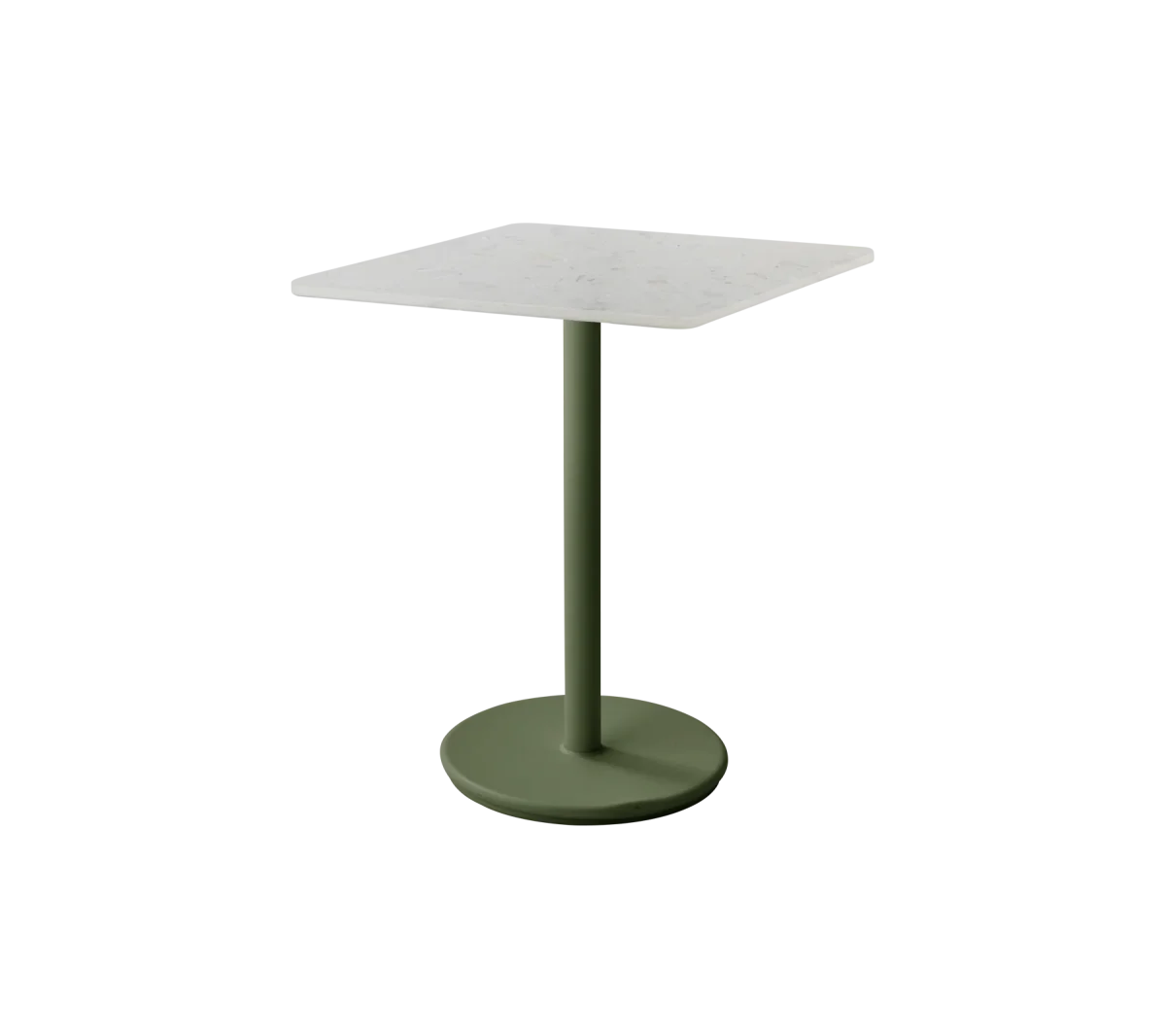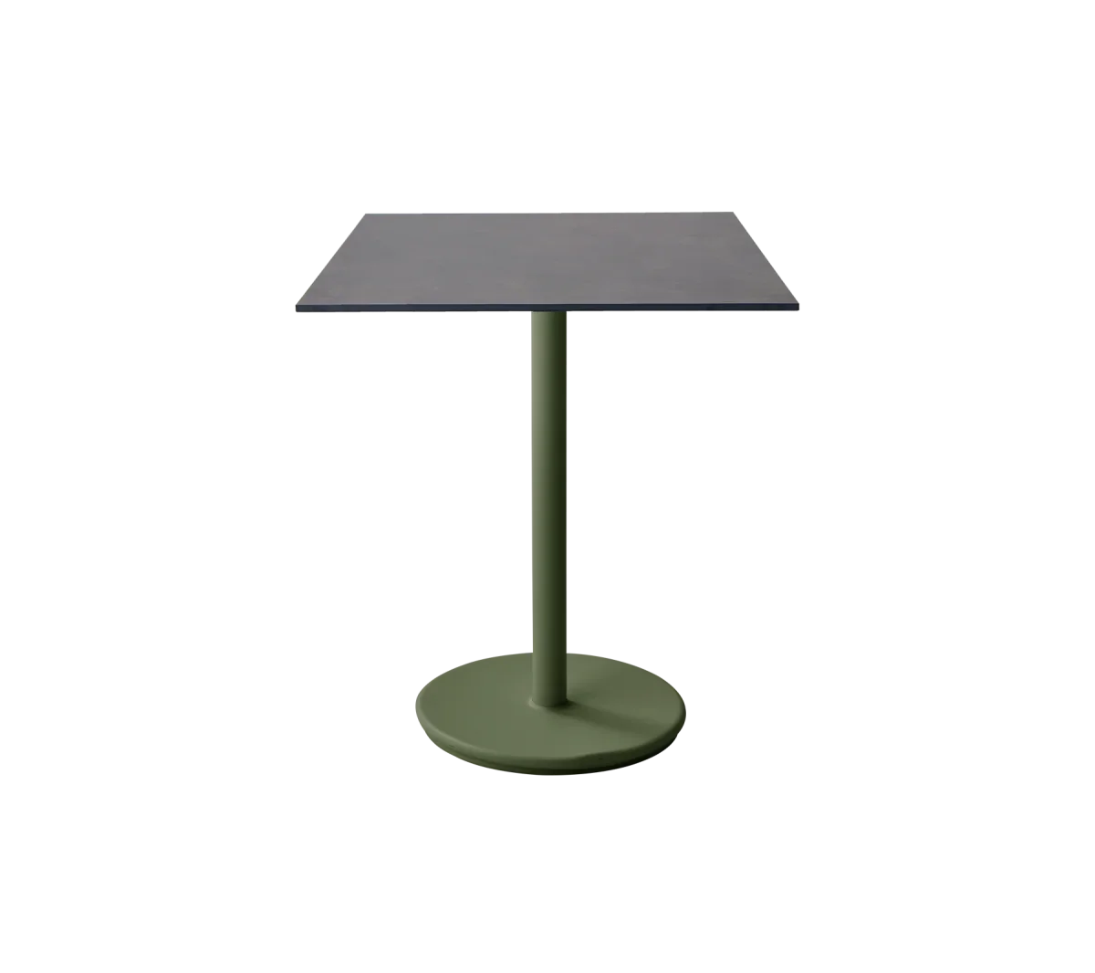 La mesa Go está hecha de aluminio con recubrimiento en polvo que resiste todo tipo de clima con una base de contrapeso para mayor estabilidad y fuerza, de este modo se puede usar en todo tipo de condiciones climáticas. La mesa Go está diseñada por Cane-line Design. La base puede ser combinada con varios tamaños y diseños de encimeras.