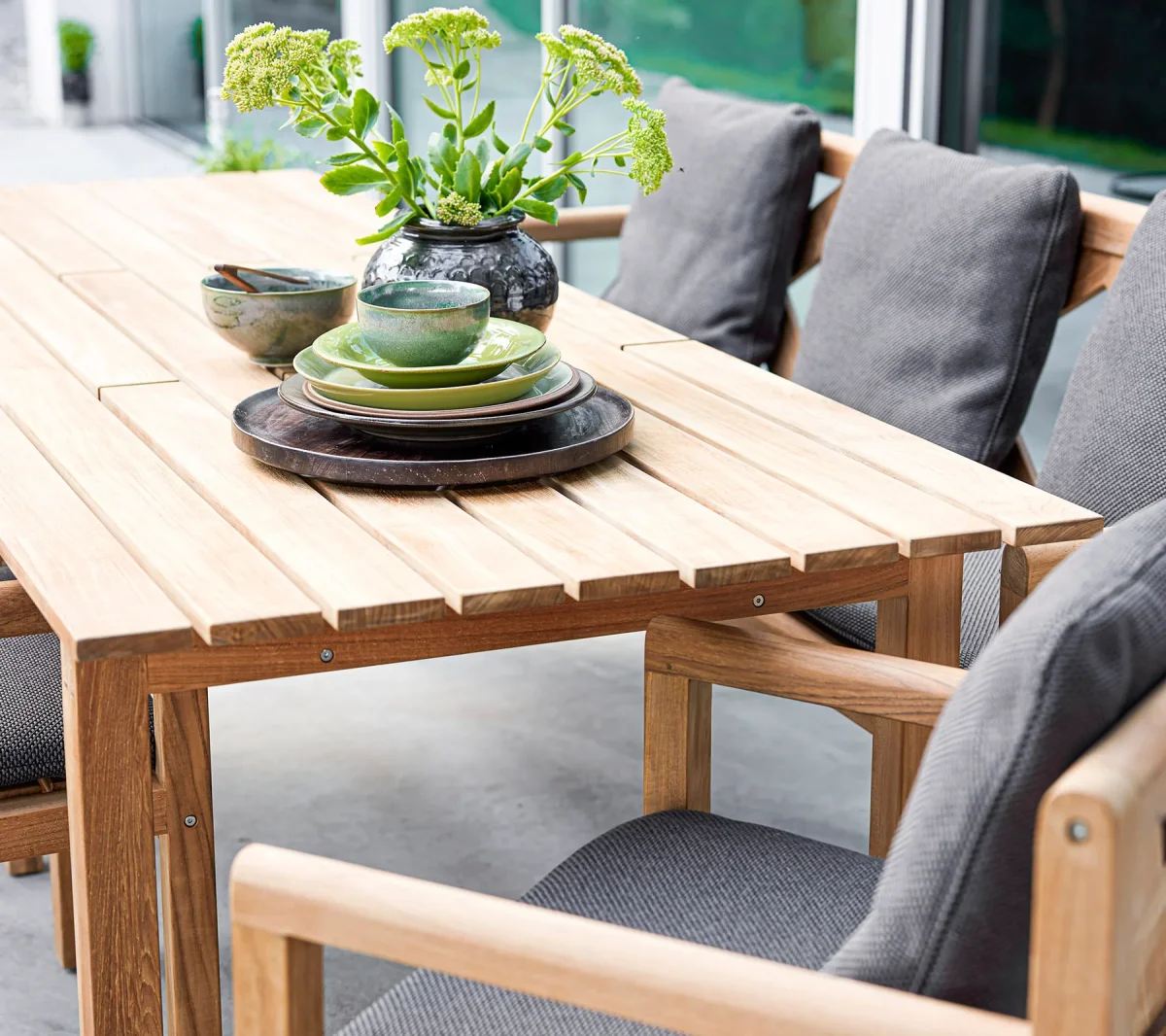 La teca se cosecha con la certificación SVLK, lo que garantiza que su producción respalda una gestión forestal responsable. Para preservar el color original y único de la teca y mantener la bella madera en buen estado, recomendamos utilizar los productos Cane-line Teak Care.