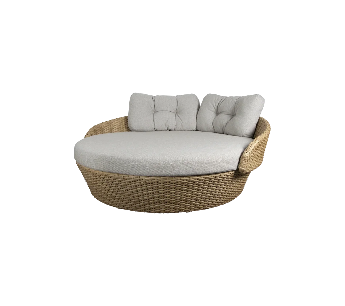 Diseñado por el equipo de Cane-line Design, el sofá cama Ocean Large tiene una escultural forma redonda que aporta un aspecto voluminoso al diseño. El sofá cama es una hermosa combinación de diseño moderno y artesanía tradicional. El cómodo sofá cama está fabricado con materiales duraderos de Cane-line sobre un robusto bastidor de aluminio con ruedas que facilitan su desplazamiento. Los materiales de las cañas son ideales para el uso en exteriores debido a sus propiedades de durabilidad y resistencia a la intemperie. El sofá cama viene con cojines cómodos y ultra suaves que dan un aspecto mullido al diseño. Los cojines están equipados con el sistema QuickDry & Airflow, que garantiza que los cojines estén secos aproximadamente una hora después de que llueva.