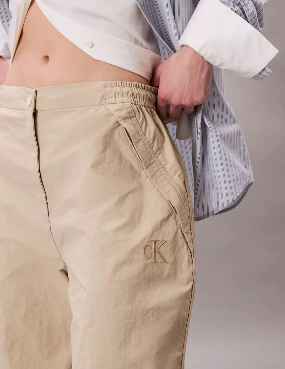 El pantalón Calvin Klein Jeans Parachute Beige es una opción moderna y versátil. Su diseño de inspiración cargo y tejido ligero ofrecen comodidad y estilo en cualquier ocasión. Con un ajuste relajado y detalles funcionales, es perfecto para un look urbano y contemporáneo.