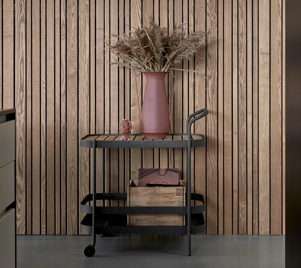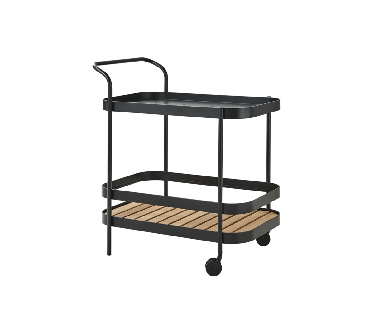 El Roll Bar Trolley es una mesa auxiliar con ruedas minimalista y moderna de diseño escandinavo. Está diseñada por el dúo de diseñadores Welling/Ludvik, conocidos por su estética pura permitiendo que cada detalle tenga una función. Roll Bar Trolley es ideal para almacenamiento y fines de servicio. Las ruedas la hacen fácil de mover y colocar donde la necesitas. Puedes cambiar la posición de los tablones de teca para crear el aspecto que deseas. La teca de Cane-line es aprobada y cultivada de acuerdo con el sistema de certificación SVLK. La mesa auxiliar con ruedas Roll Bar Trolley está producida en aluminio con recubrimiento en polvo lo cual asegura una superficie resistente. Los colores blanco y negro son intemporales.