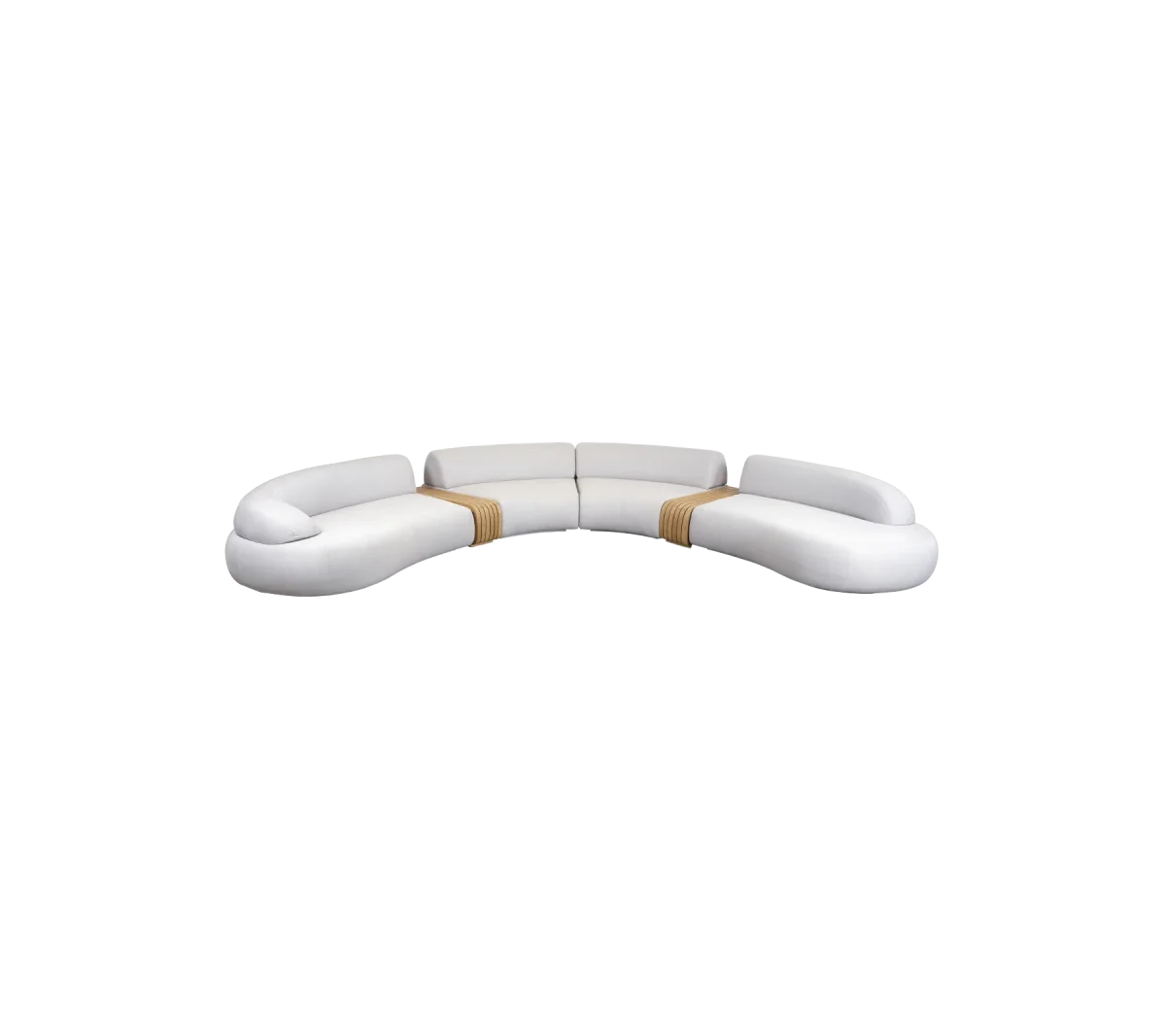 La incorporación de dos módulos individuales ofrece opciones de asientos flexibles, ideales tanto para reuniones más grandes como para momentos de confort personal. Mientras tanto, las dos mesas de centro anclan la disposición de los asientos, proporcionando superficies prácticas para bebidas, aperitivos o elementos decorativos, mejorando el flujo y la accesibilidad del espacio.