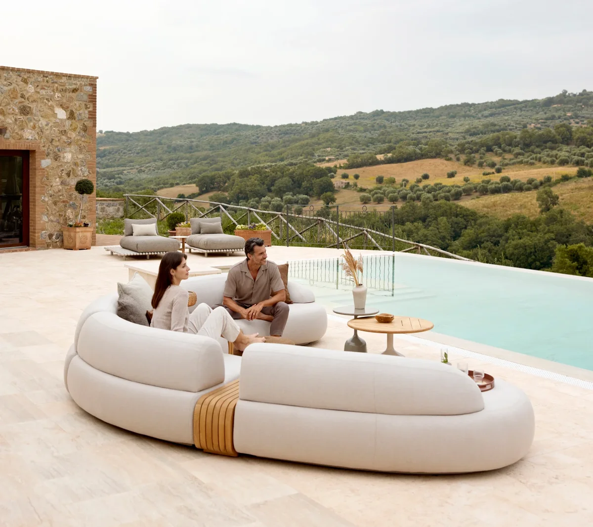 Fabricado con el resistente tejido AirTouch de Cane-line e integrado con la tecnología QuickDry & Airflow, los cojines se secan rápidamente y mantienen su forma incluso ante condiciones climáticas cambiantes. Este diseño modular transforma cualquier espacio exterior en un lounge acogedor con espacio de sobra para la reflexión tranquila, reuniones casuales o celebraciones animadas, todo mientras emana un ambiente contemporáneo y relajado.