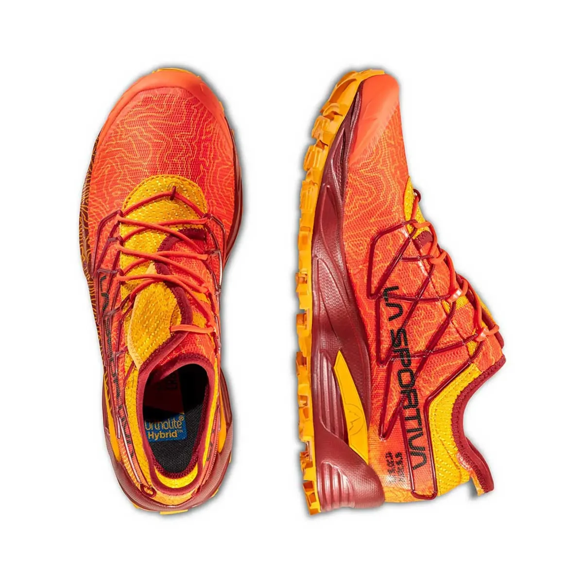Las Mutant cuentan con un innovador sistema de lazado lateral reforzado por nervios que se unen en la media suela. Los cordones se pueden recoger en un bolsillo específico para ello. La suela FriXion White ultra adherente y de gran durabilidad nos aporta un máximo agarre en terrenos duros y permite correr con total estabilidad en terrenos blandos, húmedos o con barro. La mediasuela de Eva cuenta con un alto grado de acochado y elasticidad que nos posibilita el sentir el terreno por el que estamos corriendo pero sin restar protección y confort.